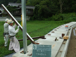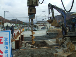 従来工法では防護柵設置時には、杭打ち作業やクレーン作業が続くため、作業現場内の作業スペースを大きく取る必要があります。 特に杭打ち作業で、路床の下が岩盤などの場合は、ダウンザホールハンマー等の工法選択することを余儀なくされ、長期間の粉塵、騒音公害の対策に悩まされ、加えて大きな作業スペースの確保に頭を悩ませていました。 しかしKGR工法ではPC版の設置以降は人力作業になる為、長期間大きな作業スペースは必要ありません。また、長期間クレーン等を使用しなくて済むため、クレーン災害に頭を悩ます事も減り、コスト削減と安全面の両方が確保できます。 |